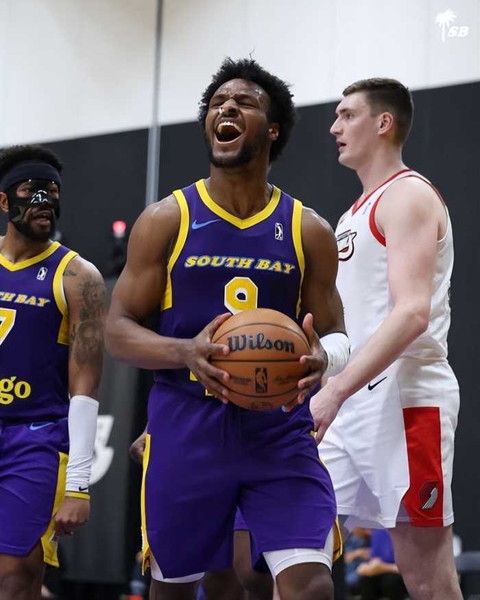 首战轮休的布朗尼·詹姆斯本场首发登场,出战25分钟,稳稳交出15分、2助攻和1篮板。全场的绝对高光时刻出现在第二节还剩不到两分钟时:布朗尼在三分线边缘接球,直接加速杀入禁区,上演了一记极其残暴的“海报级”隔扣!这记堪称发展联盟“年度最佳”候选的重扣,直接帮球队将领先优势扩大到了15分(62-47)。不得不说,布朗尼在发展联盟的这段时间表现抢眼,场均能拿下15.3分、3.7次助攻和3.2个篮板。