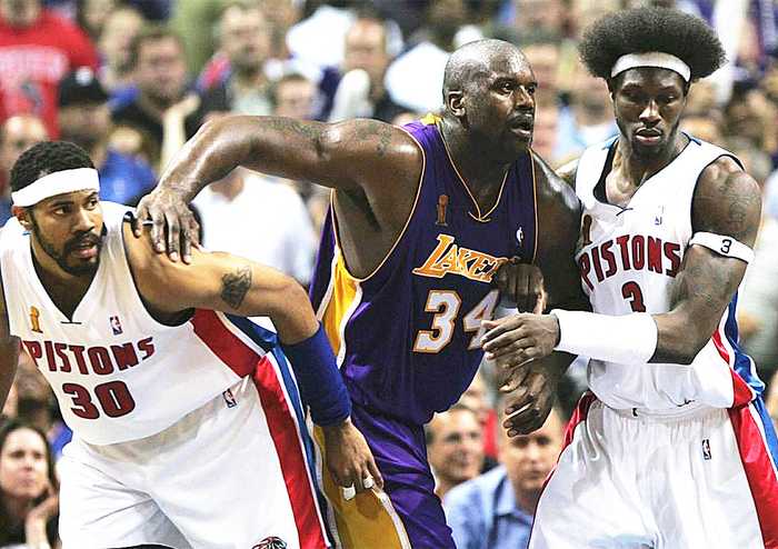 可能很多没有看过这轮系列赛的人都听说奥尼尔在内线被双华莱士锁死了,但真相其实并非如此,这轮系列赛奥尼尔场均可以砍下26.6分10.8篮板的数据,投篮命中率高达63.1%,比奥尼尔生涯另外5次总决赛的命中率还要高,只不过奥尼尔这一年的球权比较少,场均仅16.8次出手,仅次于他在06年总决赛的出手次数,而06年奥尼尔已经是巅峰末期,但04年奥尼尔还是巅峰时期,他不应该只有16.8次的出手,在三连冠时期,奥尼尔最少的一个赛季也有21次出手,砍下36.3分,就是奥尼尔少了这几次的出手,湖人队可能就少得10分