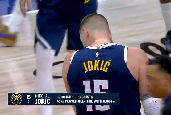 约基奇本场拿到个人第9次助攻,生涯助攻数来到6000次